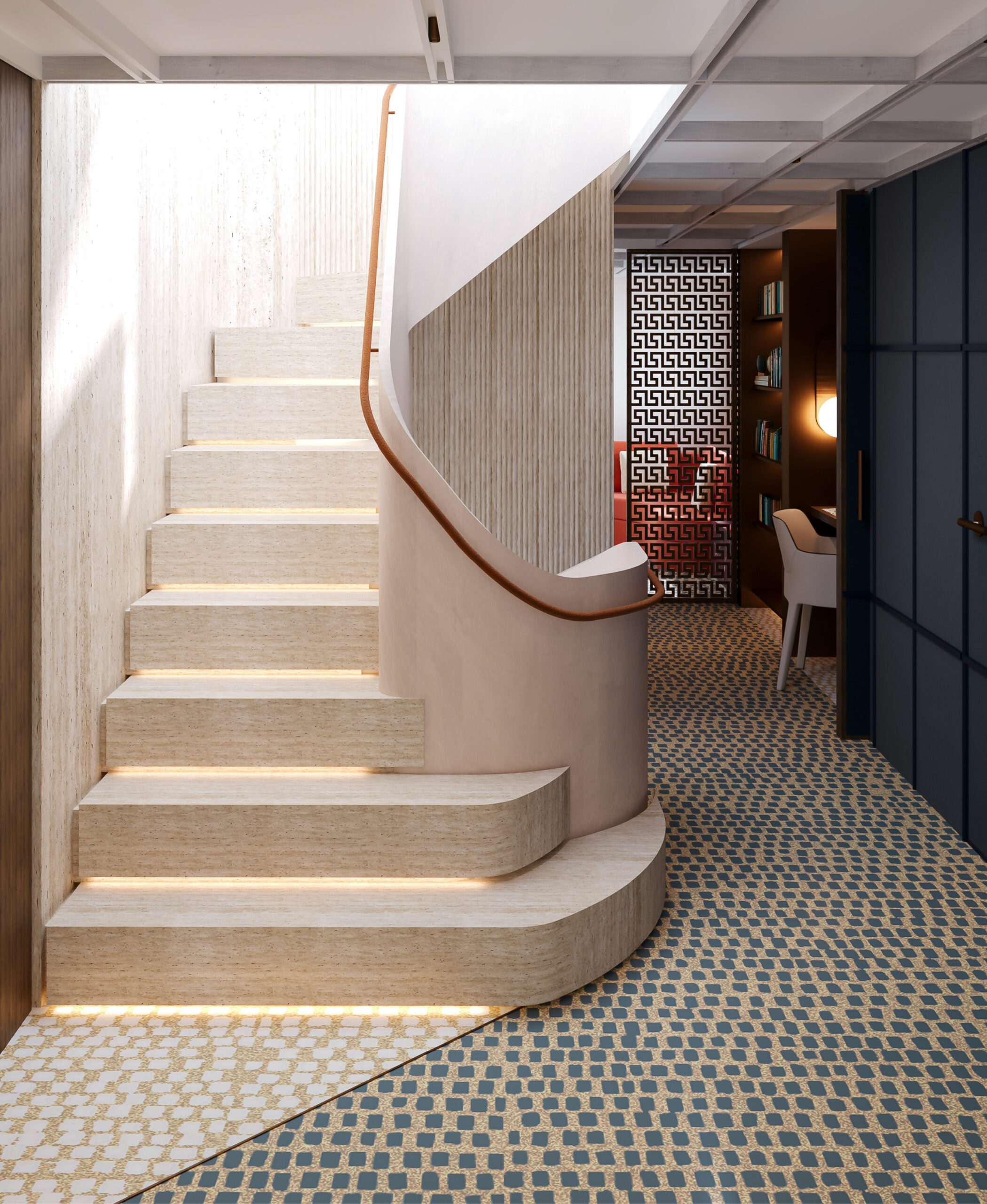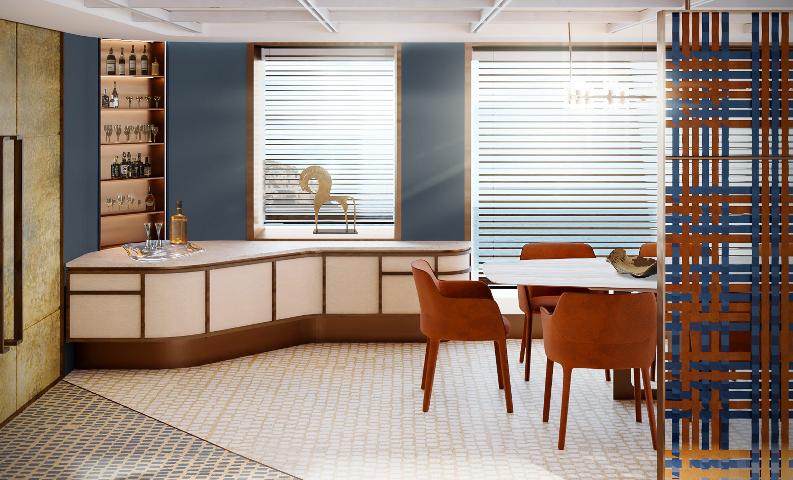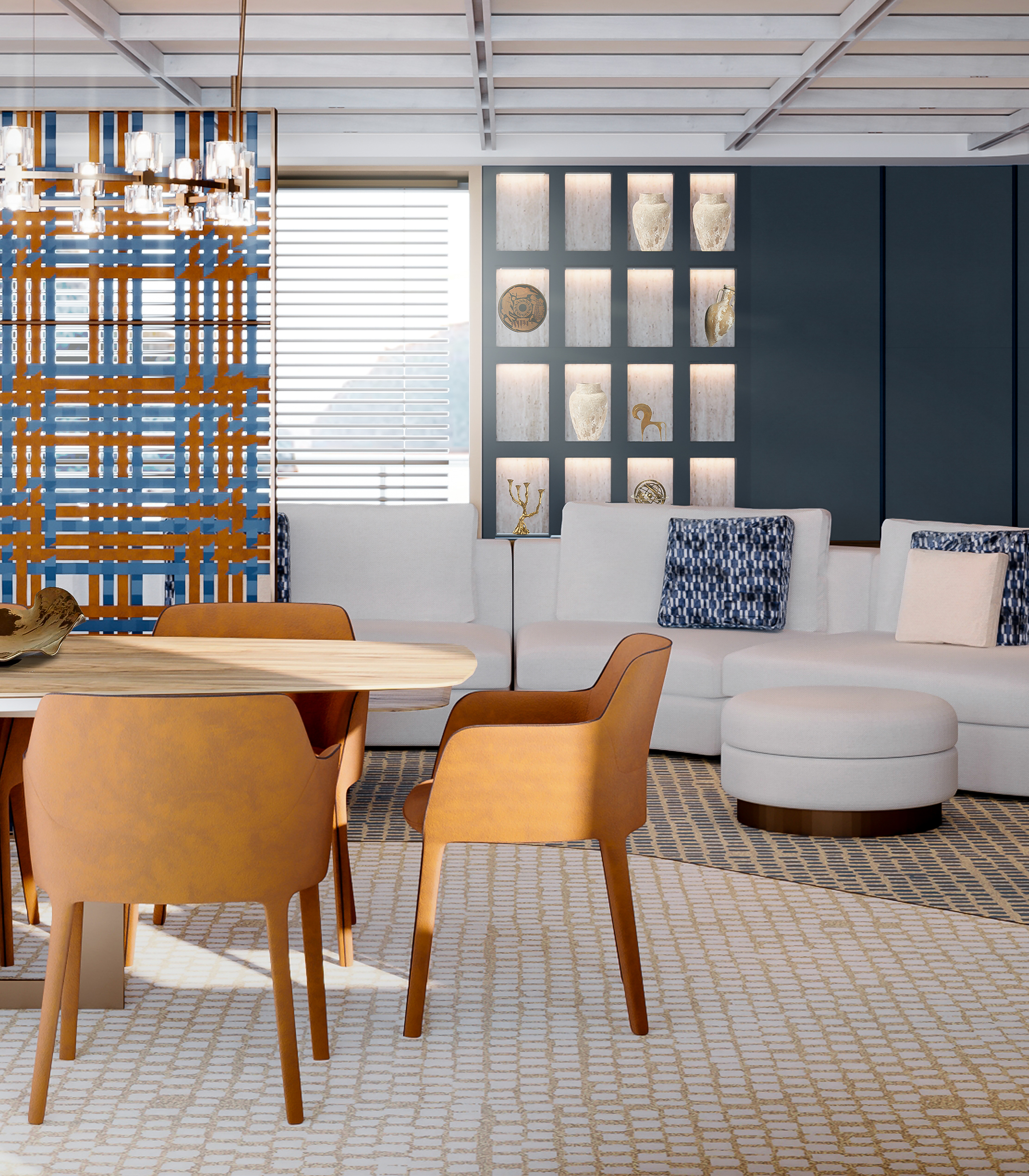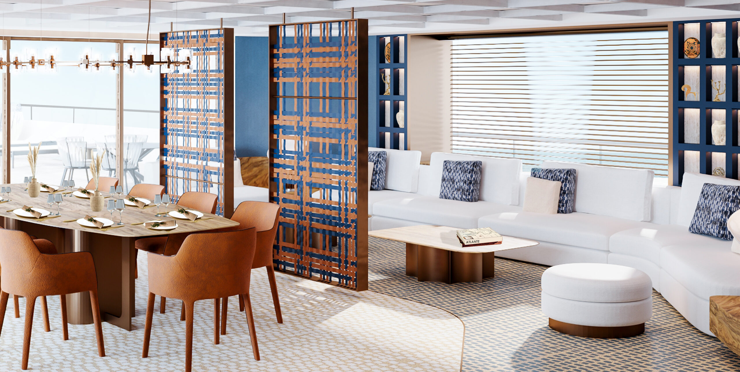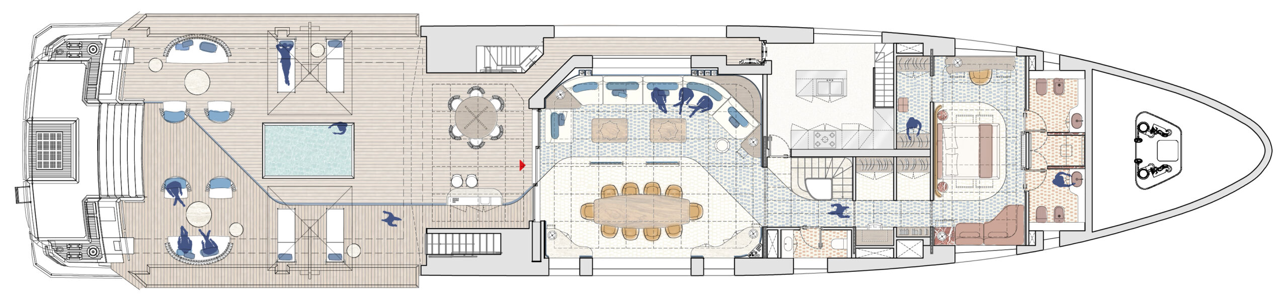 In this design challenge, Cantori asked to reimagine the mythic return of Ulysses in Homer’s Odyssey, not just as a journey to a physical land, but as a profound voyage towards self-discovery and inner truth. The yacht, built by Cantiere delle Marche, becomes an architectural narrative that unfolds the legendary journey of Ulysses and Penelope, interpreted through an innovative and bold design language. The project of FABRIC transforms the concept of home into a sanctuary for the soul, where every space reflects a step in the hero’s odyssey—each threshold inviting an intimate exploration between the vast sea and the comforting land. From the external deck with its sea-facing lounge and pool area to the flexible, open-plan salon, the yacht offers a fluid, continuous connection between living spaces. A spiral staircase, inspired by the sea, serves as a central element, linking the three levels of the yacht in harmony. At the heart of the design lies the master cabin—a symbolic retreat, featuring a central bed surrounded by a lounge, writing desk, and a luxurious spa-like bathroom designed for both. The entire space serves as a metaphor for Ulysses’ return home, a place of rest and rejuvenation after a long journey. This project, crafted with elegance and precision, pushes the boundaries of yacht design, turning each detail into a sensory experience that tells the story of Ulysses in a modern, sophisticated way.
